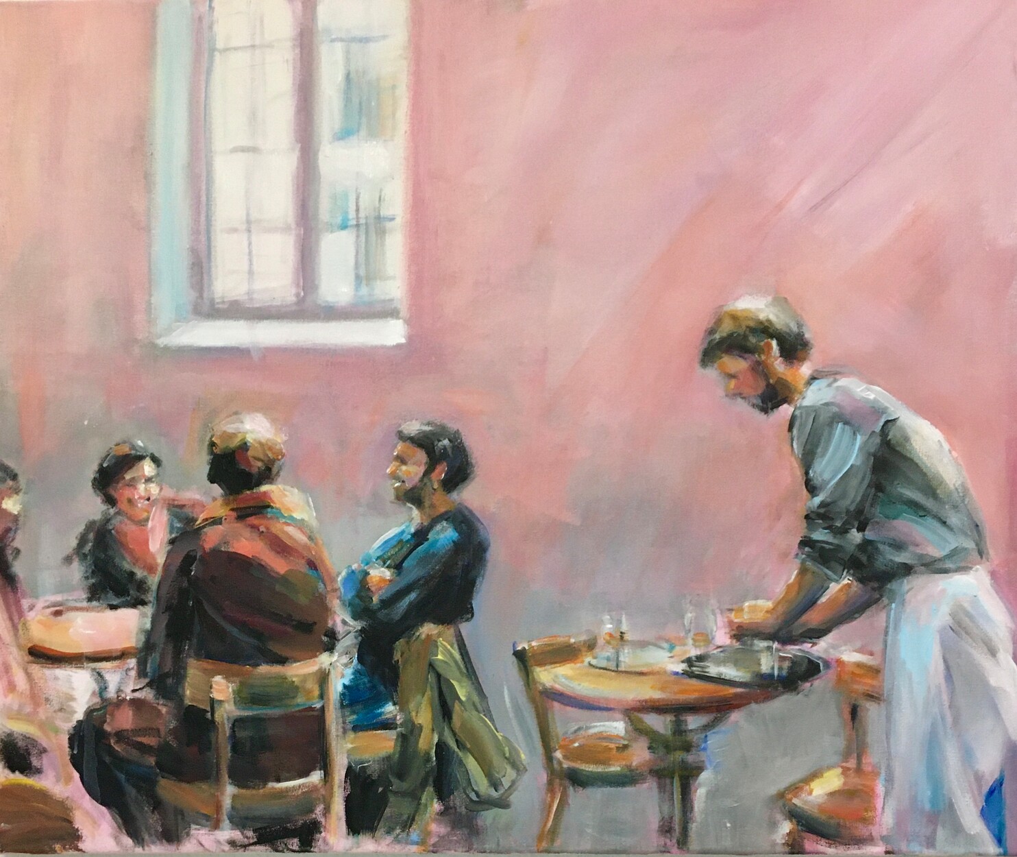 Tischrunde 4, 2023, 50 x 60 cm, Acryl auf Leinwand